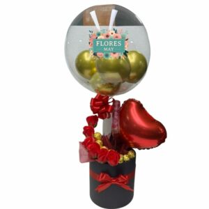 Box Cilindro con Rosas Eternas, Bombones, Espumante y Globos