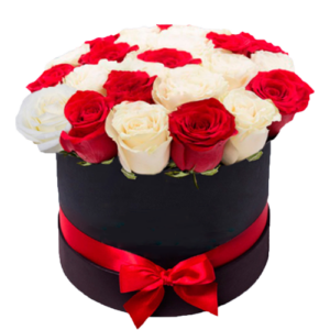Box Cilindro de 24 Rosas Blanco y Rojo