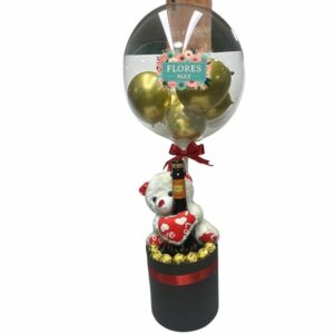 Box con Oso 20cm, Bombones, Espumante y Globo Burbuja