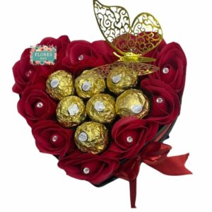 Box Corazón 9 Rosas Eternas y 7 Bombones Valente con Mariposa
