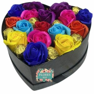 Box Corazón de Rosas 16 Eternas Celeste y 8 Bombones Valente