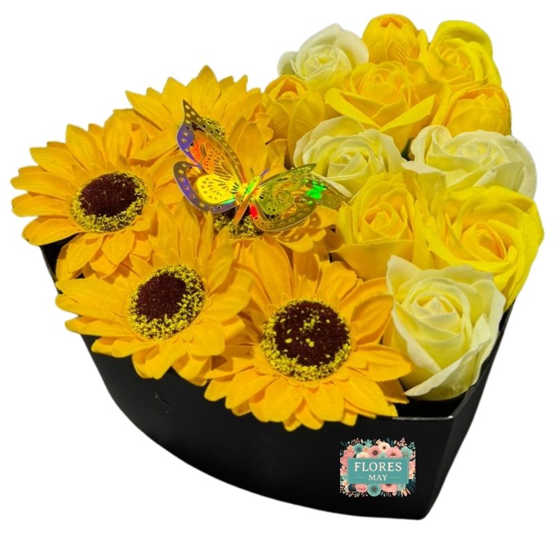 Box Corazón de Rosas Amarillas y Girasoles Eternos