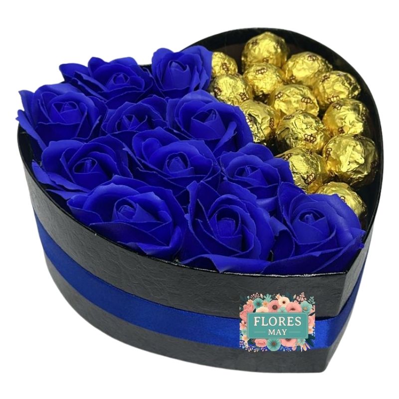 Box Corazón de Rosas Eternas Azules mitad 12 Bombones Valente