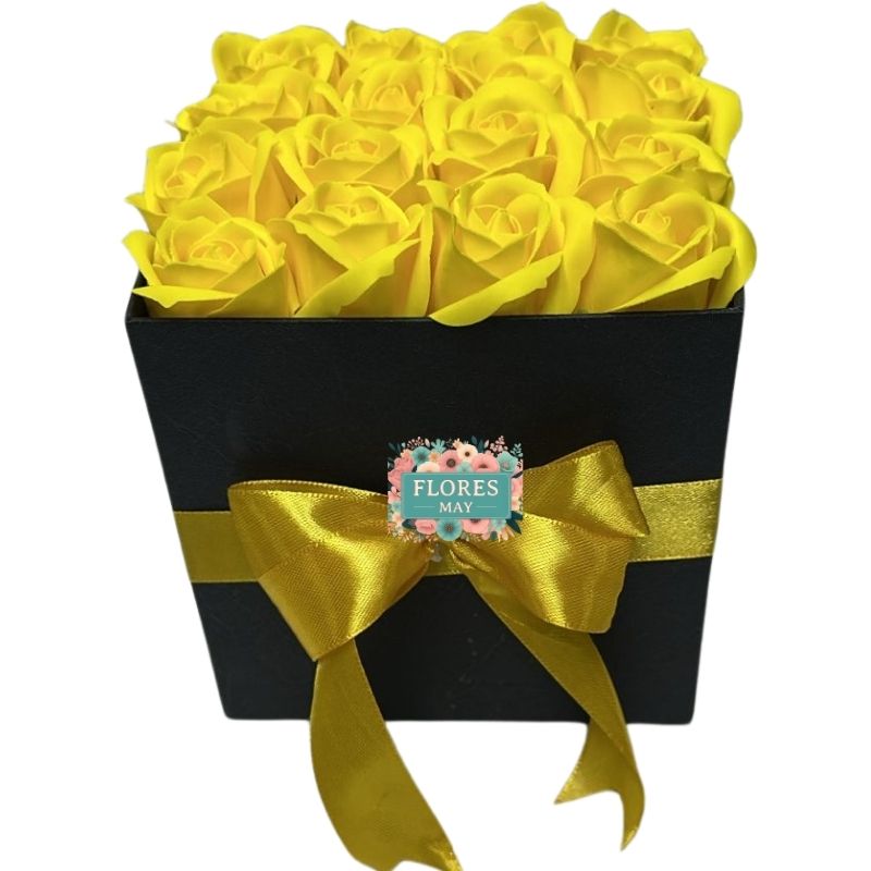 Box Cuadrado de 16 Rosas Amarillas Eternas