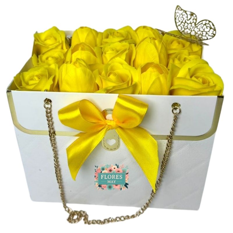Categorías: Carteras Florales, Flores Amarillas, Flores Eternas - Rosas de Jabón