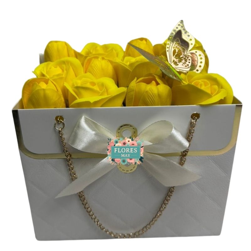Cartera de Tulipanes y Rosas Eternas Amarillas