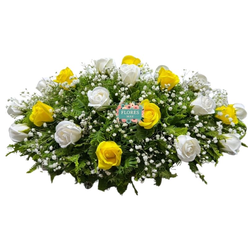 Cubre Urna de 25 Rosas Eternas Blancas y Amarillas