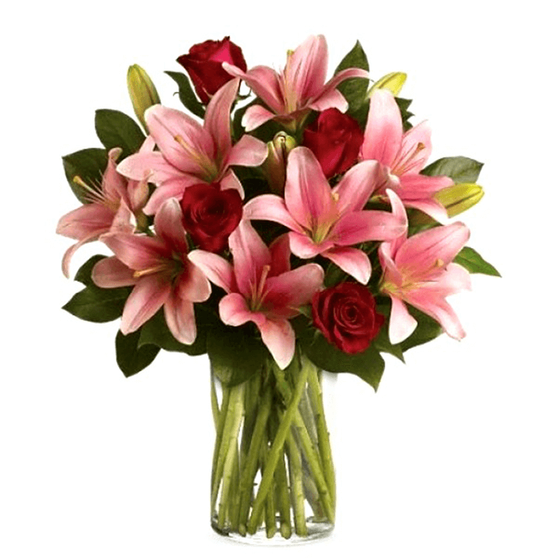 Florero de Rosas y Lilium. Colores sujeto a disponibilidad