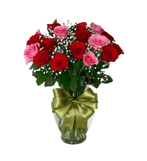 Florero de 15 Rosas Rosado y Rojo. Diseño sujeto a disponibilidad