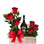 Canasta de 8 Rosas, 4 Cervezas y Bombones Ferrero Rocher 100grs