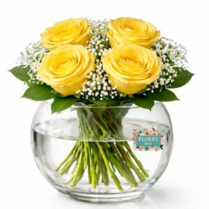 Pecera de 4 Rosas Amarillas