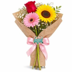 Ramo de 1 Girasol, 1 Rosa y 1 Gerbera