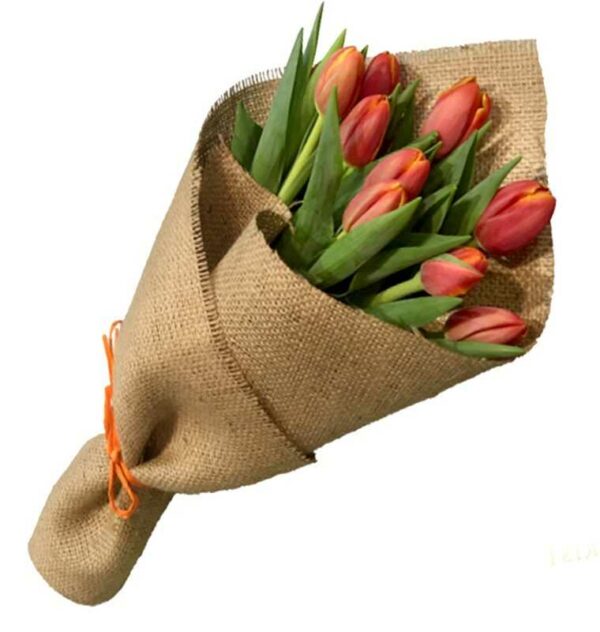 Ramo de 10 Tulipanes en Arpillera. Imagen referencial