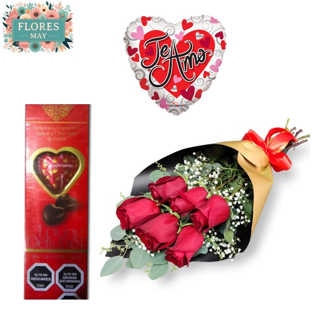 Ramo de 6 Rosas, Bombones Amor y Globo