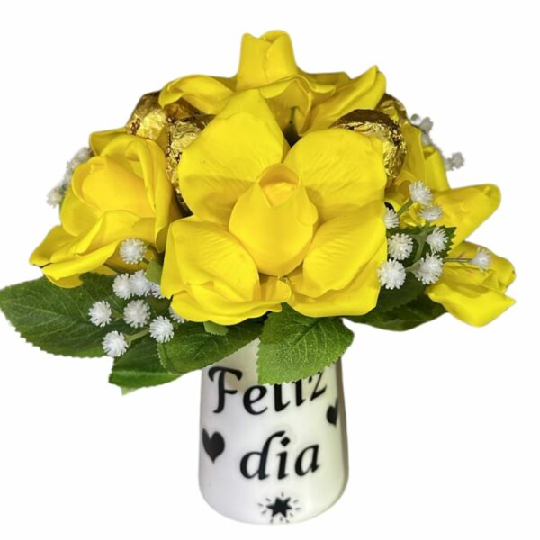 Taza de Rosas Amarillas Eternas y 4 Bombones
