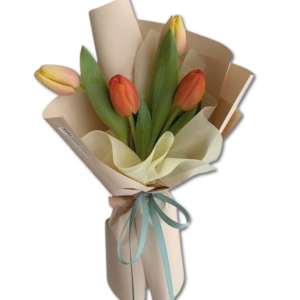 Bouquet Redondo de 4 Rosas y Girasol