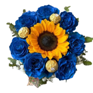 Base de 3 Girasoles, 12 Rosas y 6 Bombones