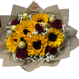 Bouquet de 7 Girasoles y 20 Rosas Rojas