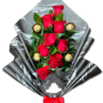 Ramo Alargado de 8 Rosas y 4 Bombones Ferrero Rocher